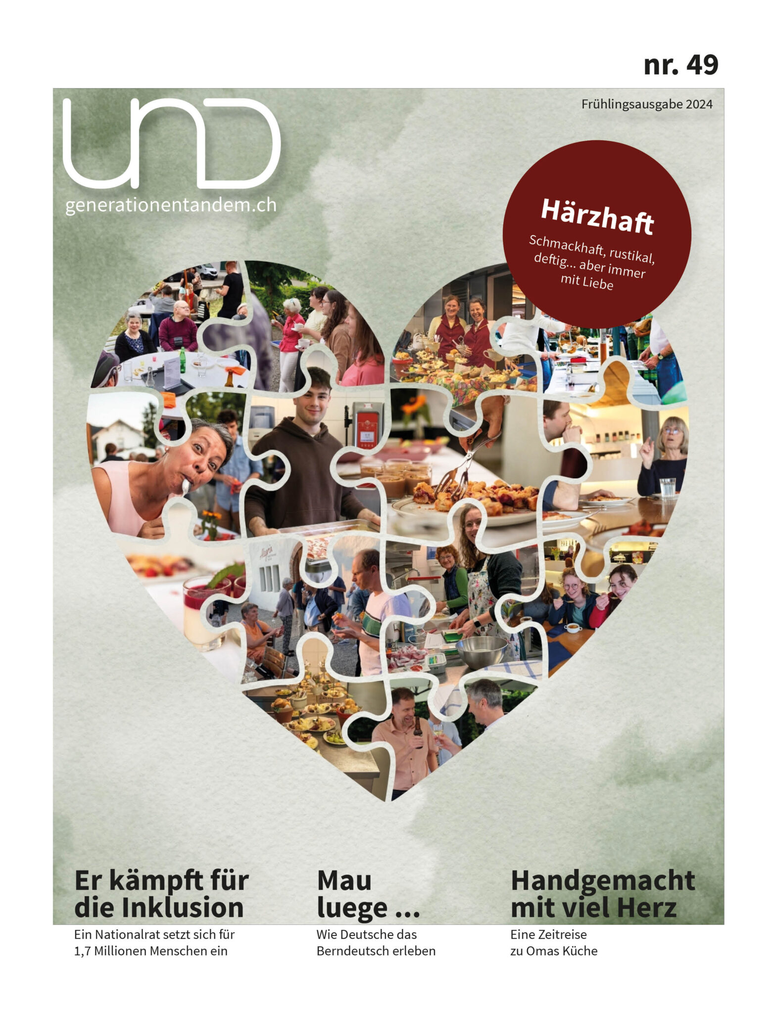 Ein Freiwilligen-Unternehmen, eine Generationen-Bewegung, ein zivilgesellschaftliches Start-up: UND Generationentandem ist eine gemeinnützige, politisch und religiös unabhängige Organisation aus der Region Thun. Der Verein ist offen für alle, unabhängig von Alter, Geschlecht, Nationalität und Wohnort. Über 150 Menschen machen freiwillig mit und bringen sich sinnvoll und sinnstiftend ein.